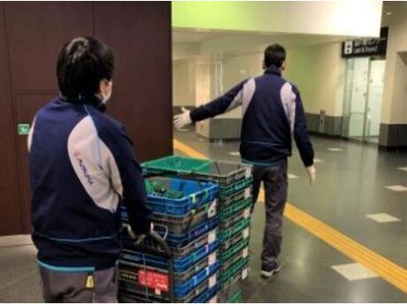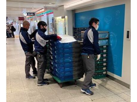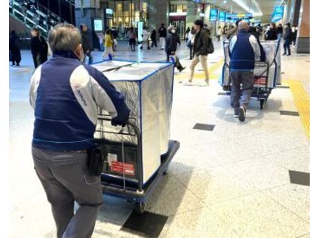 駅構内で荷台を押すスタッフ/≪時給1200円≫天王寺駅・大阪駅構内の日勤お仕事★20代~50代活躍中◎